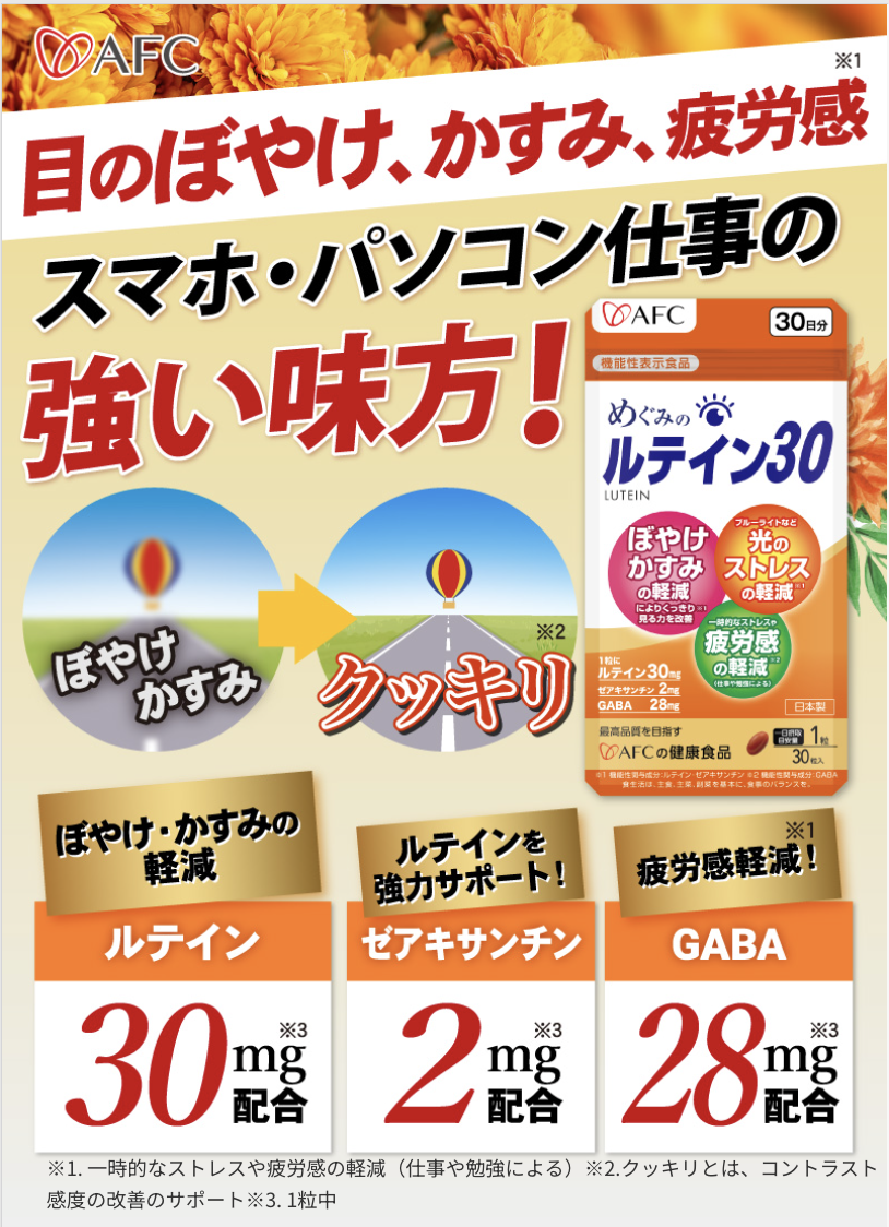ルテイン30mgという高水準な配合に加え、現代社会の天敵である「ストレス」にアプローチするGABAを配合している点は、他社製品にはない大きなメリットです。