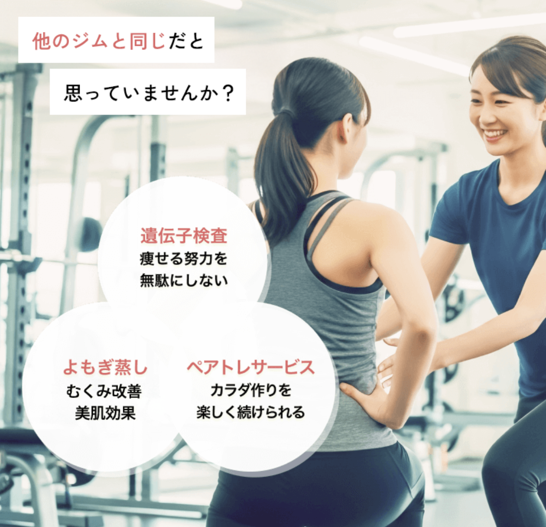 | GYMS(ジムズ) | 女性専用 | パーソナルジム×痩身エステ | 月額 4,180円〜 |