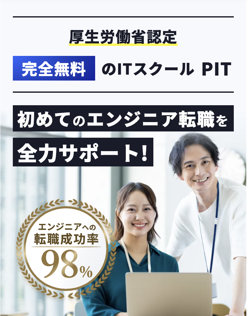 本記事では、未経験からエンジニアを目指す方が、資金的なリスクや精神的なプレッシャーを極限までゼロにし、純粋に「スキル習得」と「自分に合った企業への転職活動」に集中できる環境を探すための目的別比較情報をまとめました。その主軸となるのが、初期費用、授業料、そして違約金が一切かからない完全無料のITスクール「PIT(ピット)」です。PITは、ただ無料であるだけでなく、厚生労働省の認定を受け、世界基準のIT資格取得を徹底サポートする手厚い体制が整っています。