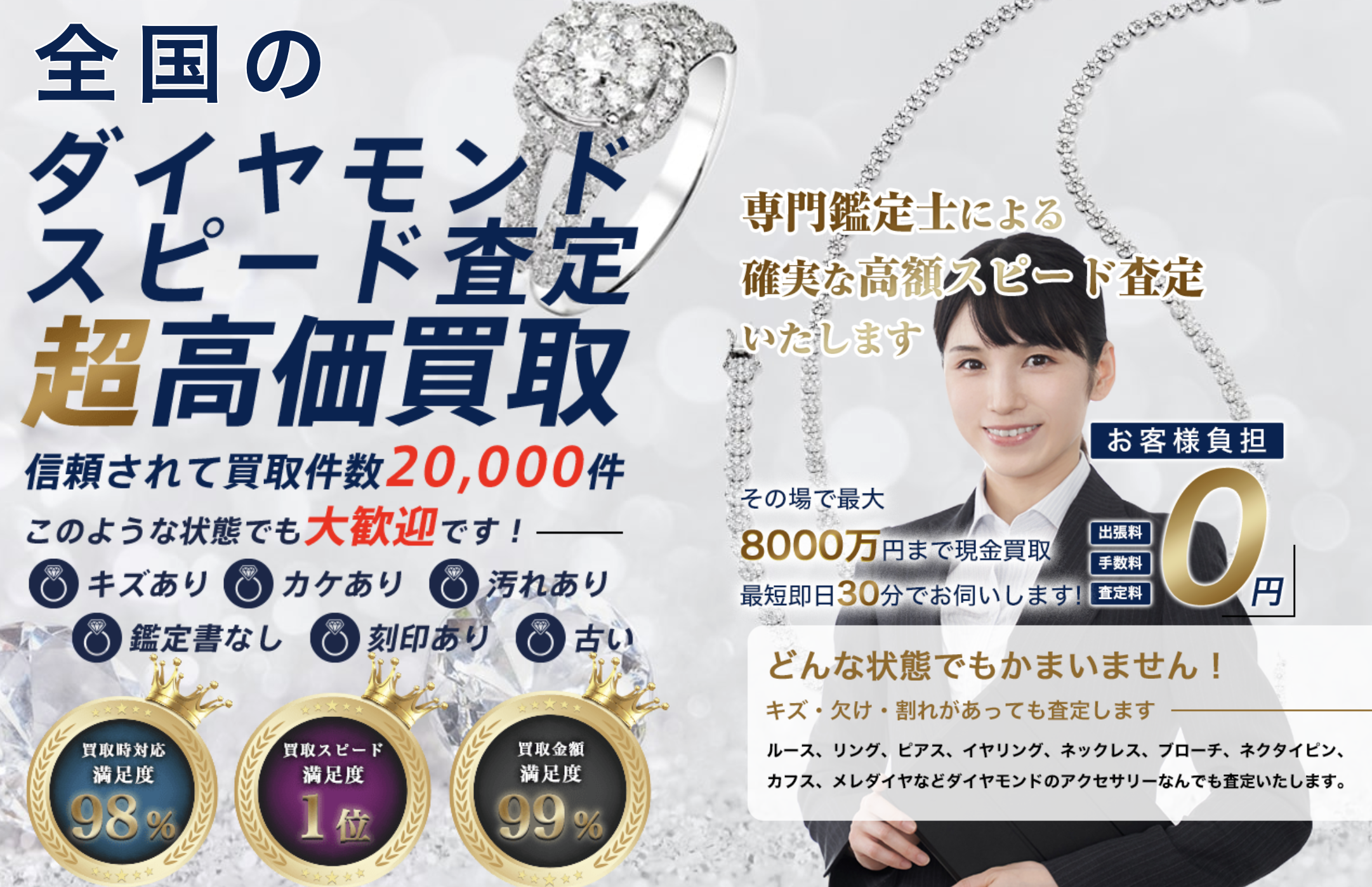 ▶︎ 最適解:第3位 クラリティ ダイヤモンド専門の鑑定士が査定し、最短即日30分で出張買取が可能。さらにその場で即現金化できるため、スピードと高額査定を両立したい方に最適です。