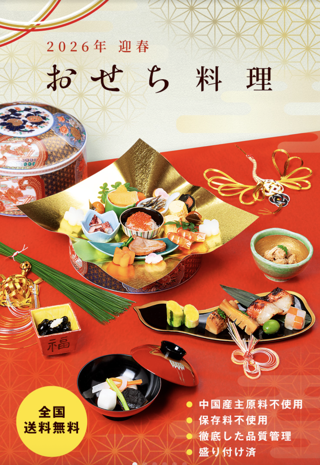 | 3. 安心・安全への取り組み | 衛生管理(HACCP、FSSC22000など)、合成保存料不使用、原産地表示が明確か。 | 特に冷凍おせちや生鮮食品は、安全管理体制が信頼の証となります。 |