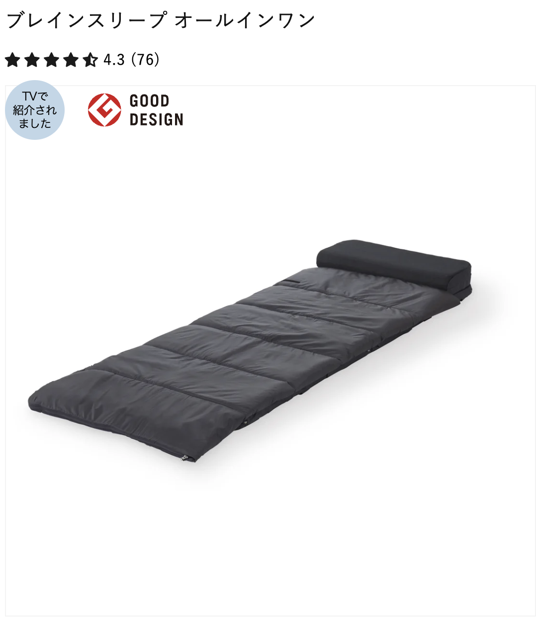 | 1位 | ブレインスリープ ALL IN ONE(ブレインスリープ) | 脳を休める次世代設計・高通気性・一体型 | 69,300円〜 | 3層メッシュ構造/マットレス+枕+布団一体型 |