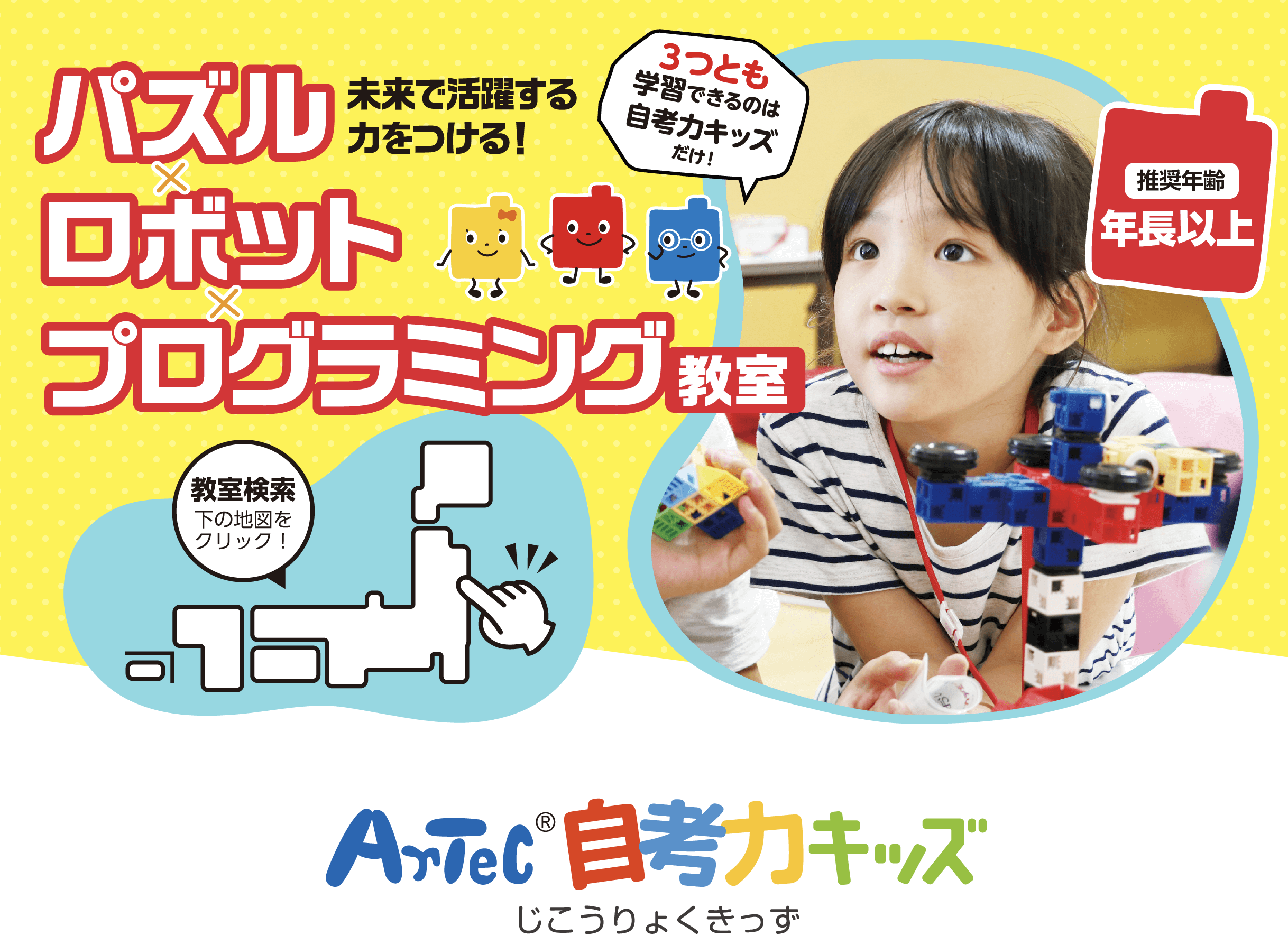 プログラミング学習の最初の一歩として、パズル、ロボット、プログラミングの3分野をバランスよく、遊び感覚で体験させたい低学年(小1~小3)に最適です。
