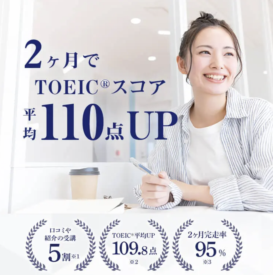 - 明確な実績: 2ヶ月という短期間でTOEICスコアが平均109.8点アップした実績。