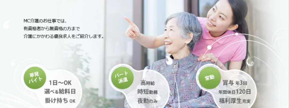 MC介護のお仕事は、株式会社メディカル・コンシェルジュが運営する専門求人情報サイトです。全国26拠点というスケールメリットを活かし、地方を含む幅広いエリアで常勤・非常勤や派遣など、多様な求人を無料で提供しています。