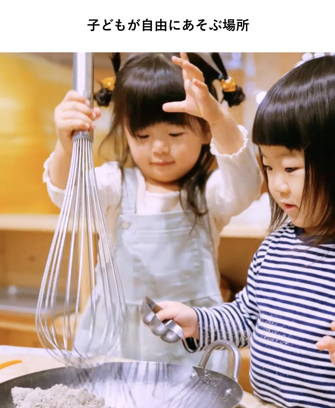 - 3つのゾーン構成: 「体を動かすゾーン」「頭と手を使い集中するゾーン」「ごっこ遊びなどで感性を育むゾーン」の3つで、子どもの発達段階に応じた遊びを提供します。