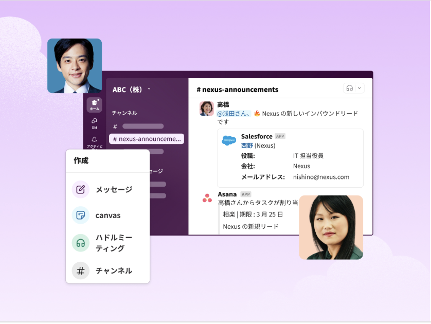 世界的にシェアを持つSlackは、エンジニアやクリエイティブ職を抱える組織に非常に人気があります。2,600以上の外部アプリと連携できる柔軟性が最大の特徴で、通知の自動化やワークフローの構築により、業務の自動化を推進したいチームに適しています。