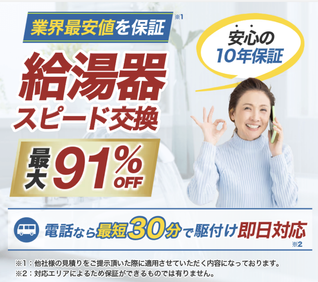 - スピード対応・最短翌日工事:全国に豊富な在庫を完備しており、「今日お湯が出ない」という緊急事態にも最短翌日で対応。