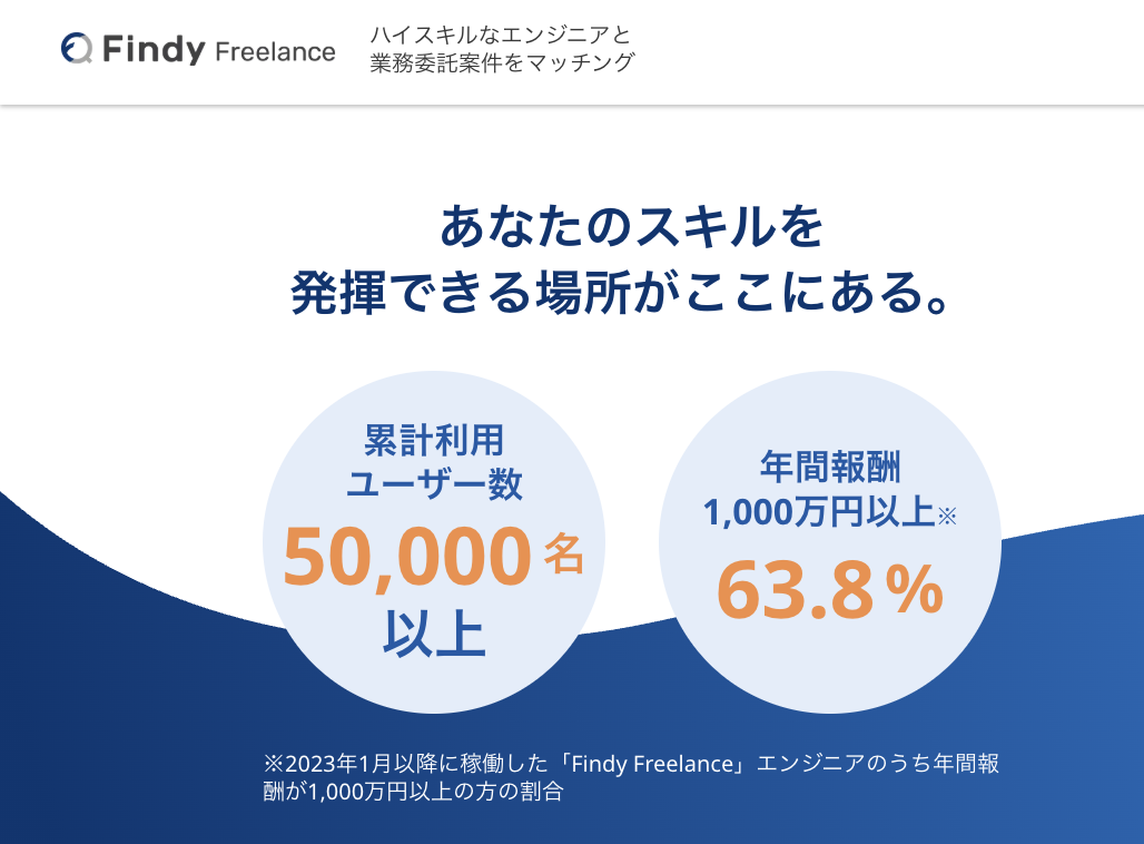 | 5位 | Findy Freelance | モダンな技術選定とフルリモート案件に特化 | 1,000万円超も可能 |