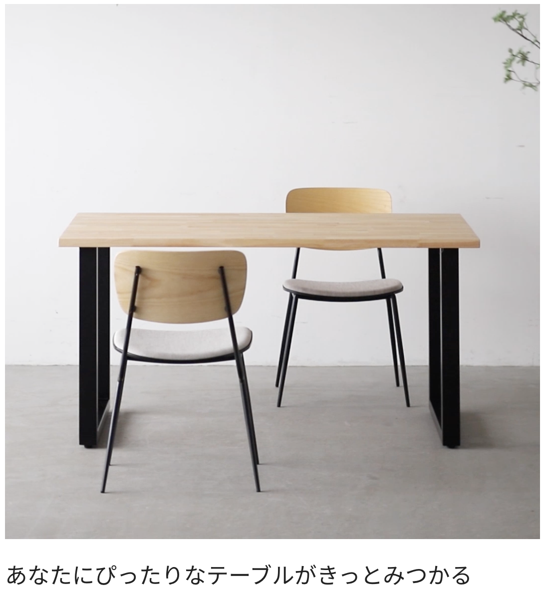 - THE TABLE / ラバーウッド × Black Steel KANADEMONOの代名詞とも言えるシリーズ。天板の風合いとマットブラックの鉄脚のコントラストが美しく、ダイニングにもワークデスクにも最適です。