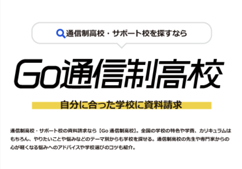 | GO通信制高校 | 4位:シンプル検索型 | 学校の特徴が一文でまとまっており分かりやすい |