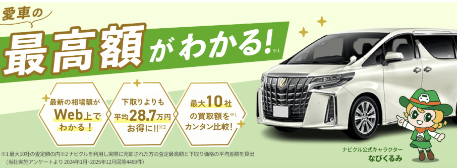 一方で、複数業者の競争原理をストレートに活用し、自らの手で市場の最高額をスピーディーに引き出したいアクティブな方には、実績と信頼のナビクルによる一括査定が強力な武器となります。