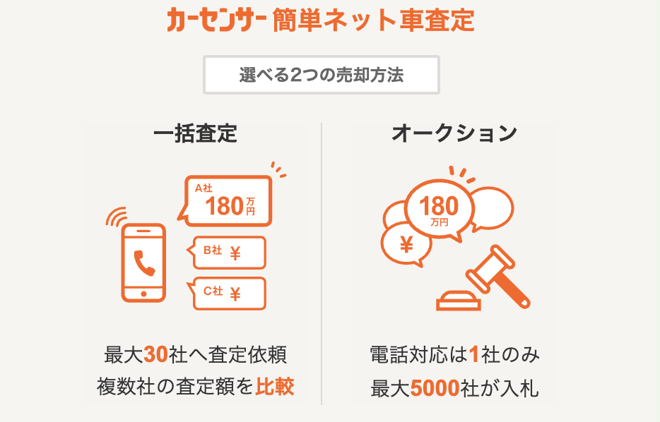 株式会社リクルートが運営するカーセンサー簡単ネット車査定は、業界最大級の提携業者数を誇る老舗サービスです。大手買取店だけでなく、特定の車種に強い専門店や地域密着型の中小買取店まで幅広く網羅しており、最大30社への同時査定依頼が可能です。希少車やカスタムカーなど、評価が分かれやすい車両の場合、思わぬ専門店が高値をつけてくれる可能性があります。また、要望欄を活用することで、特定の時間帯での連絡やメールでの連絡を希望する旨を伝えることができる柔軟性も持ち合わせています(※業者によっては電話が来る場合もあります)。