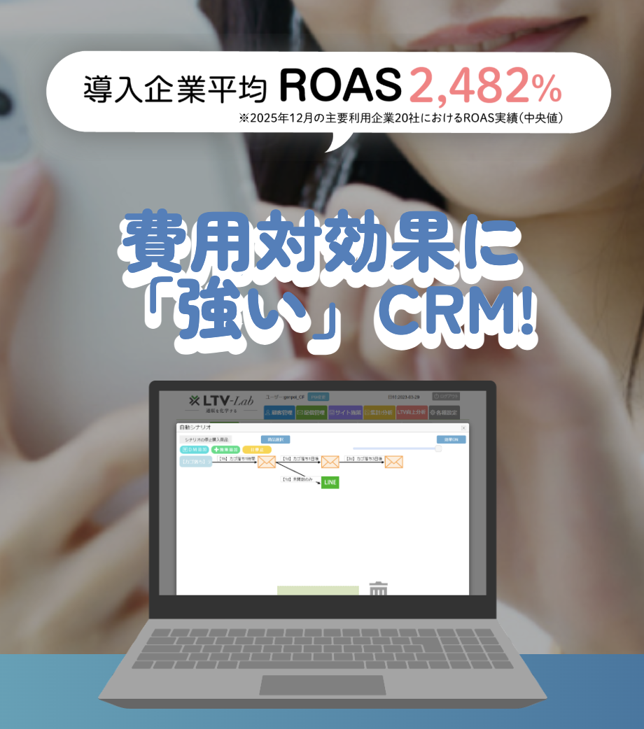 | LTV-Lab | 有効アドレス数課金でメール/LINE送り放題。配信特化。 | 中小〜中堅EC企業 | 初期費用:50,000円 月額費用:30,000円〜 |