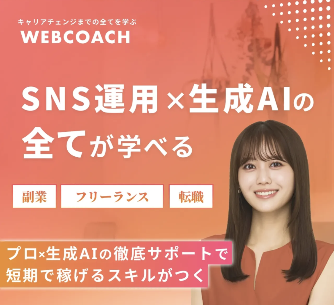| 2位 | WEBCOACH | 月々9,800円〜 | 47種類のスキルから選択可。 受講中にスクールから案件提供あり |